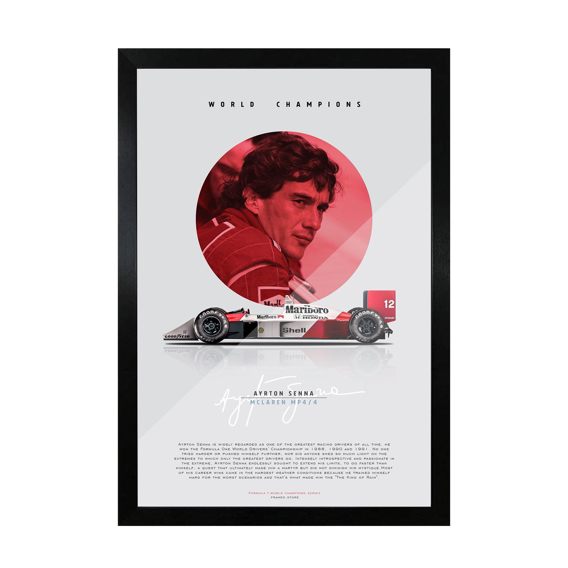 Shop Ayrton Senna - World Champions Series Poster exclusively brought to you from the Frameo Store.