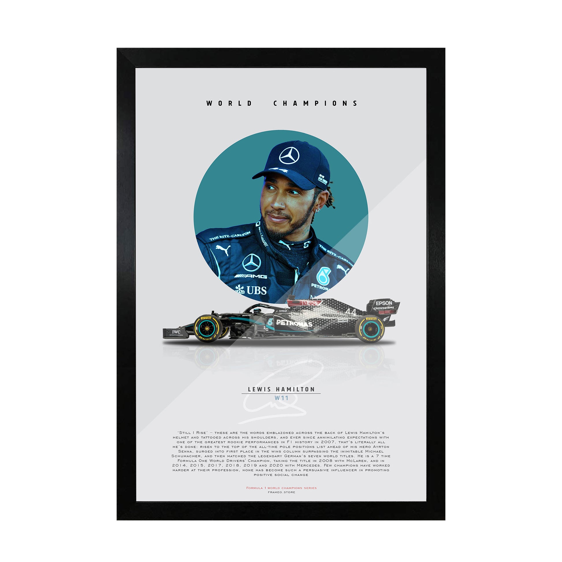 Shop Lewis Hamilton - World Champions Series Poster exclusively brought to you from the Frameo Store.