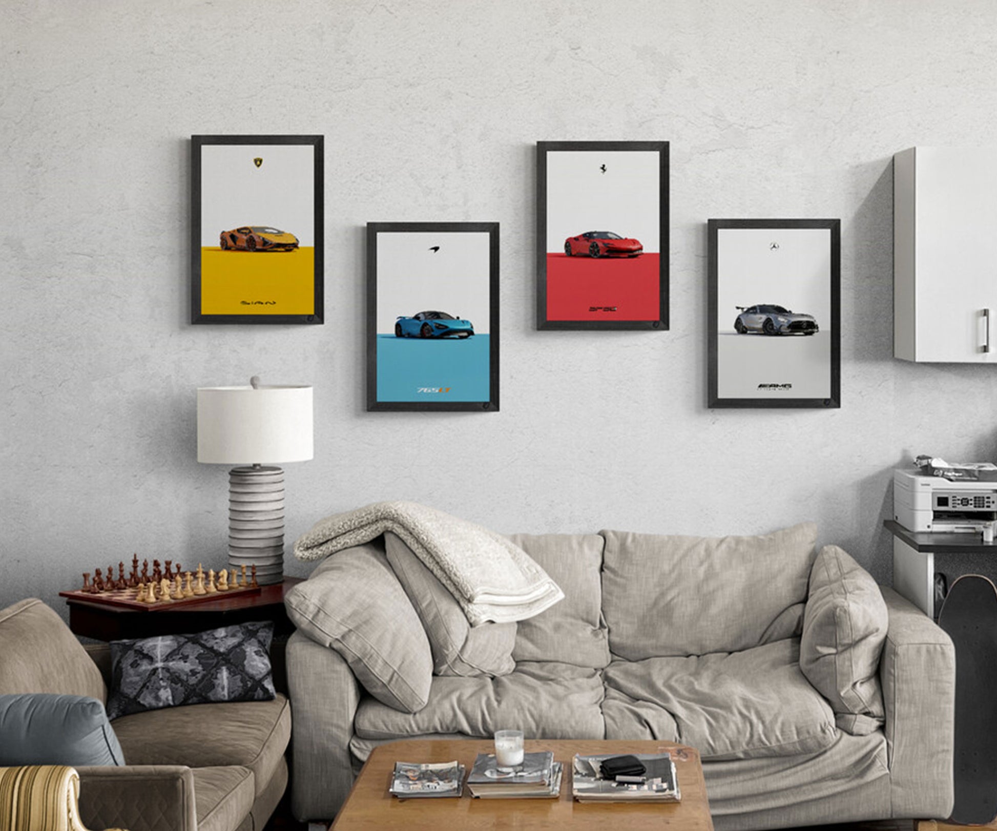 Supercars Minimalist Framed Poster Set of 4