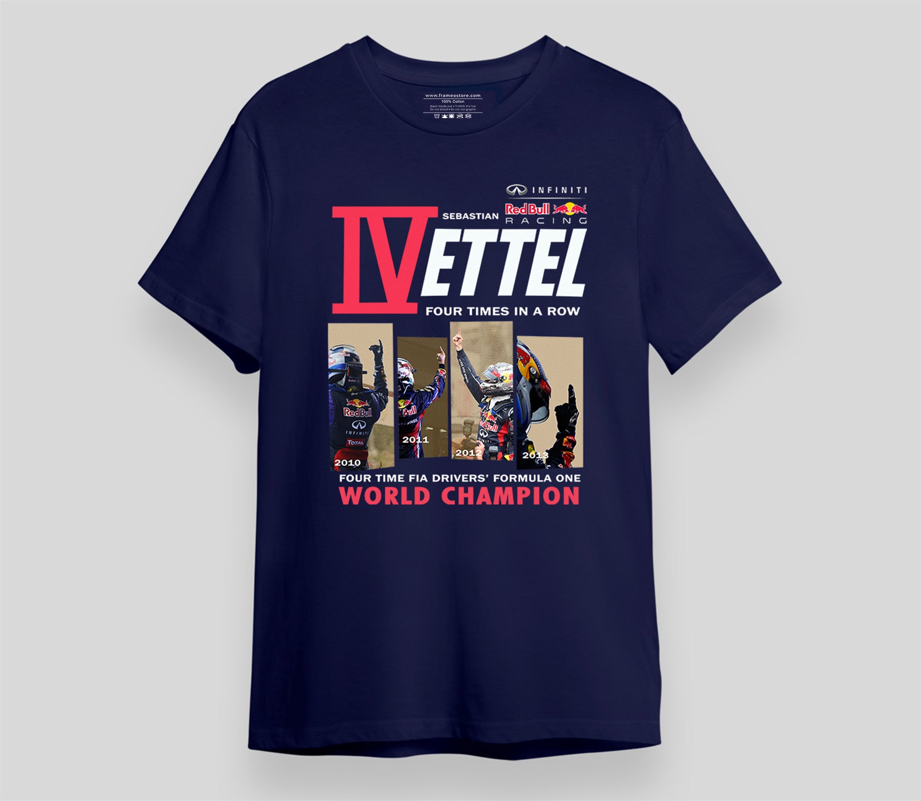For the Formula 1 enthusiasts & Sebastian Vettel fans, you have found a perfect t-shirt for your wardrobe.